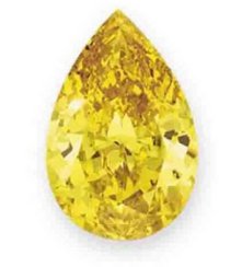 В соответствии с экспертным заключением Геммологического Института Америки (GIA) этому камню грушевидной формы присвоены цвет фантазийный яркий желтый (fancy vivid yellow) и чистота VS2. Столь яркий цвет алмаза – Fancy Vivid Yellow – в природе встречается достаточно редко. Желтый цвет алмаза обуславливается примесью атомов азота, замещающих в кристаллической решетке этого минерала атомы углерода.