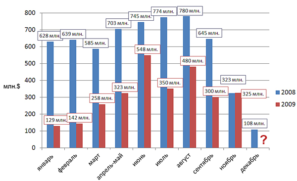 Сравнение продаж на сайтах DTC в 2008 и 2009 гг.