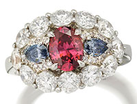 Одним из главных лотов обещает стать кольцо с фантазийным бриллиантом красно-пурпурного цвета, предварительная оценка которого составляет от $642-916 тысяч.